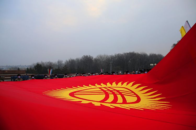 Государственный флаг Кыргызской Республики утвержден 3 марта 1992 года. Авторами являются Маматбек Сыдыков, Сабыр Иптаров, Эдиль Айдарбеков, Бекбосун Жайчыбеков и Жусуп Матаев.