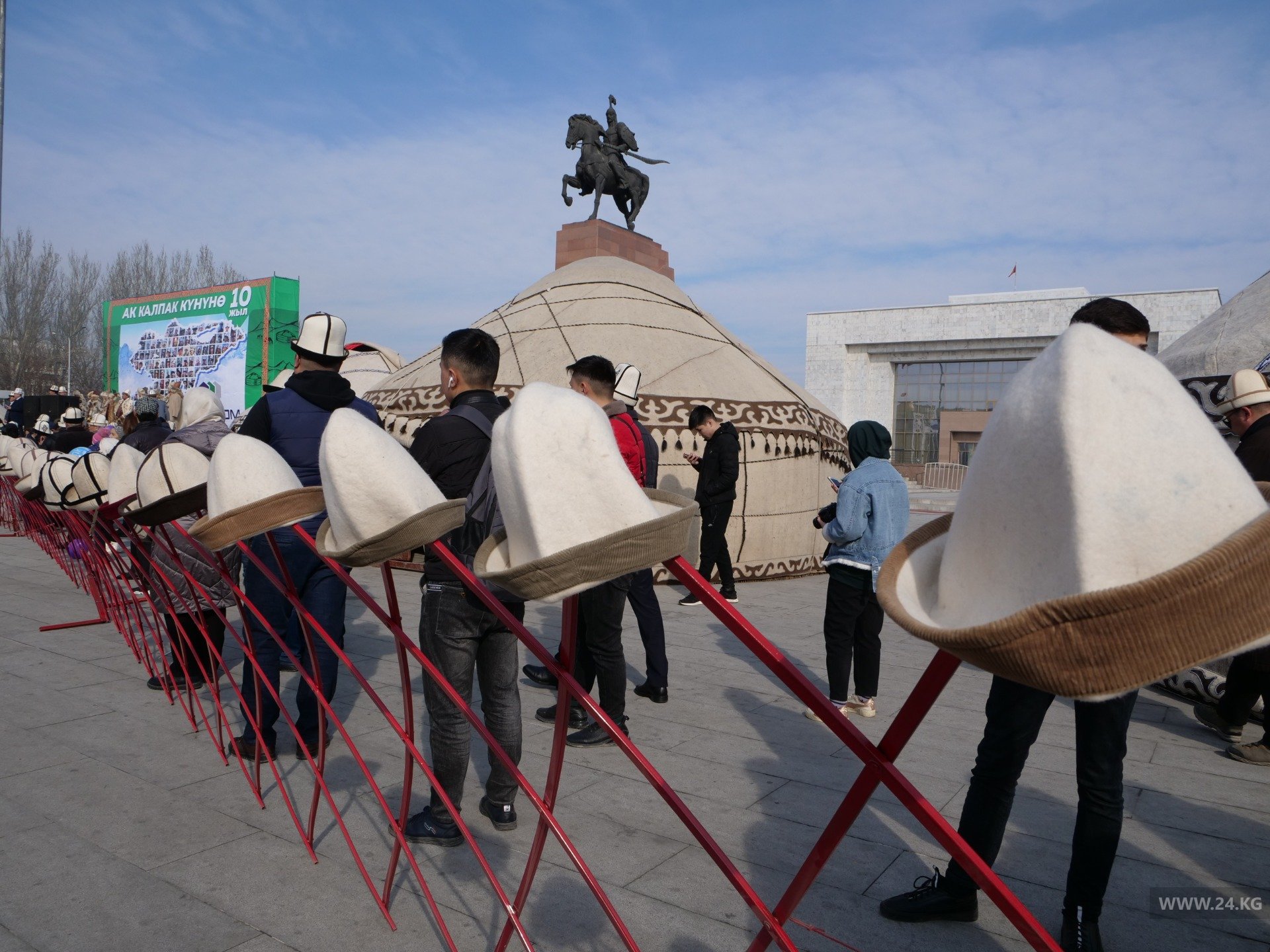 В Бишкеке отметили День национального головного убора — ак калпака. Этот праздник кыргызстанцы начали отмечать десять лет назад по инициативе кинорежиссера Ырысбека Жабирова. В этом году провели этношествие, в котором участвовало более 1 тысячи 500 человек. Они собрались возле кинотеатра «Ала-Тоо» и прошли маршем до центральной площади.