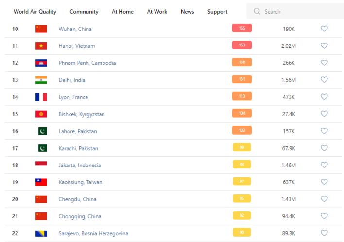 В рейтинге крупнейших городов мира по качеству воздуха World Air Quality Бишкек поднялся на 15-е место.