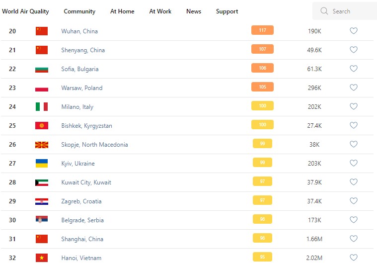 В рейтинге крупнейших городов мира по качеству воздуха World Air Quality Бишкек опустился на 25-е место.