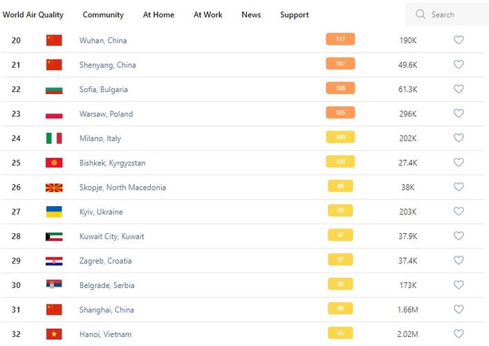 Отметим, что индекс качества воздуха (AQI) разделен на шесть категорий, указывающих на возрастающий уровень опасности для здоровья. Значение AQI выше 300 означает опасное качество воздуха, а значение ниже 50 — хорошее.