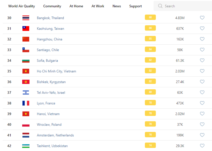 В рейтинге крупнейших городов мира по качеству воздуха World Air Quality Бишкек опустился на 36-е место.