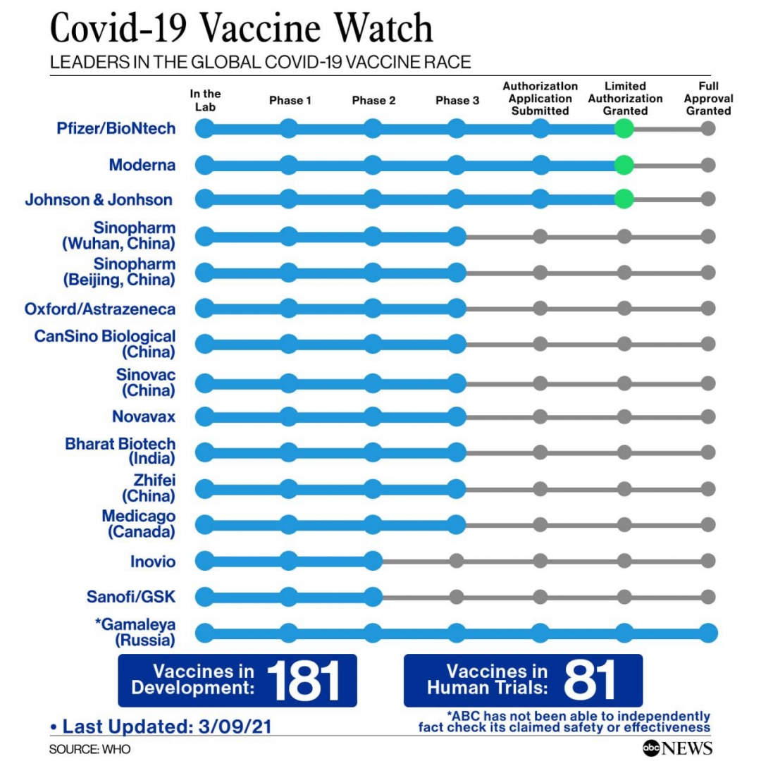 Обогнав Pfizer/BioNtech, Moderna и Jоhnson & Jоnhson, вакцина «Спутник V» прошла все стадии испытаний и получила статус полного одобрения (Full Approval Granted).