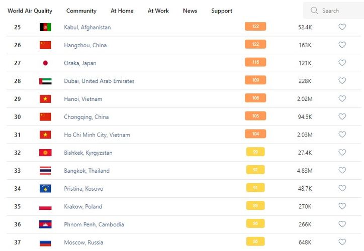 В рейтинге крупнейших городов мира по качеству воздуха World Air Quality Бишкек опустился на 32-е место.