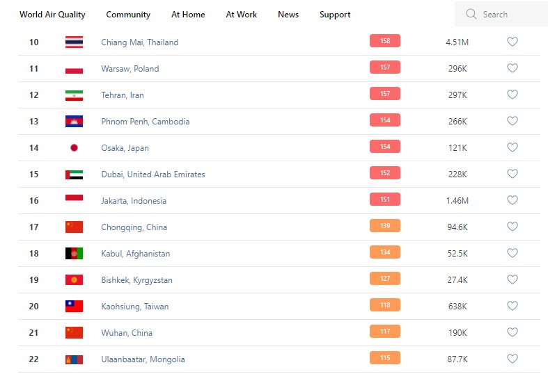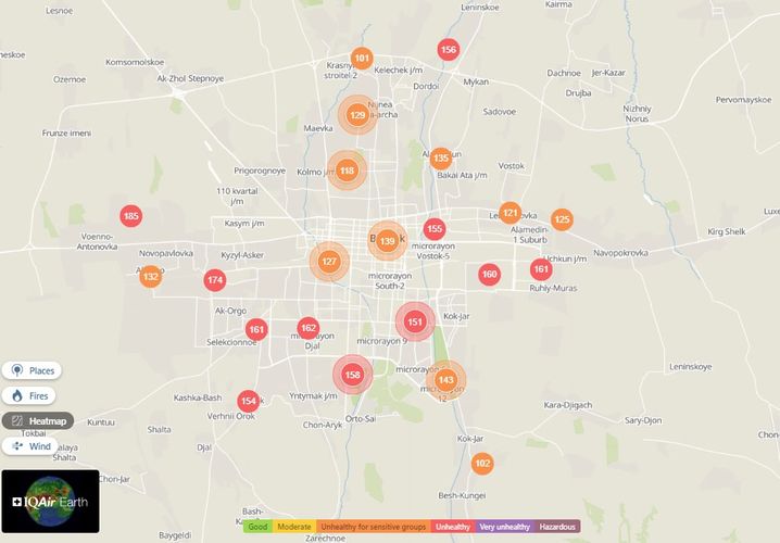 В рейтинге крупнейших городов мира по качеству воздуха World Air Quality Бишкек находится на 19-м месте.