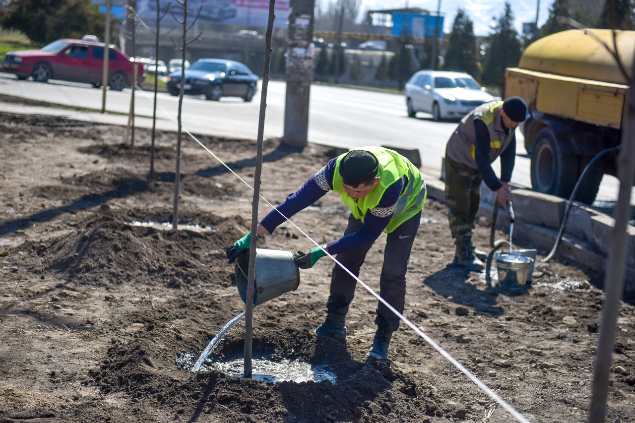 По ее данным, деревья сегодня посадили и. о. мэра Бишкека Бактыбек Кудайбергенов, вице-мэр Жамалбек Ырсалиев и президент Международной ассоциации предпринимателей Акбар Маразыков на пересечении улиц 7 Апреля и Менделеева. Им помогали сотрудники Бишкекзеленхоза, которые заранее подготовили лунки.