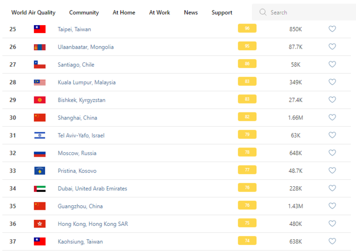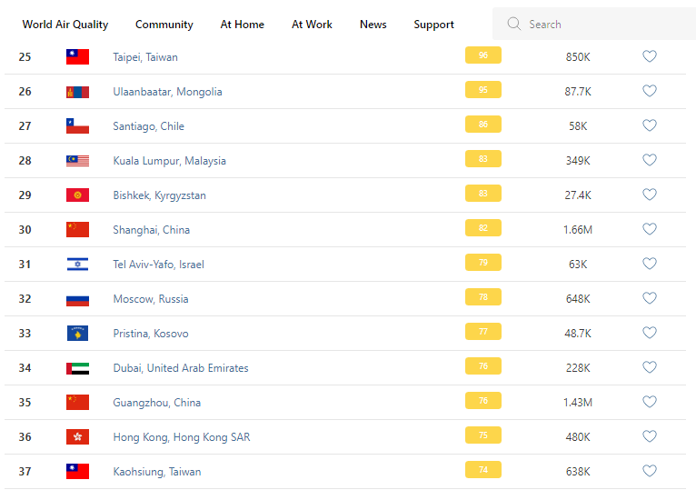 В рейтинге крупнейших городов мира по качеству воздуха World Air Quality Бишкек опустился на 29-е место.