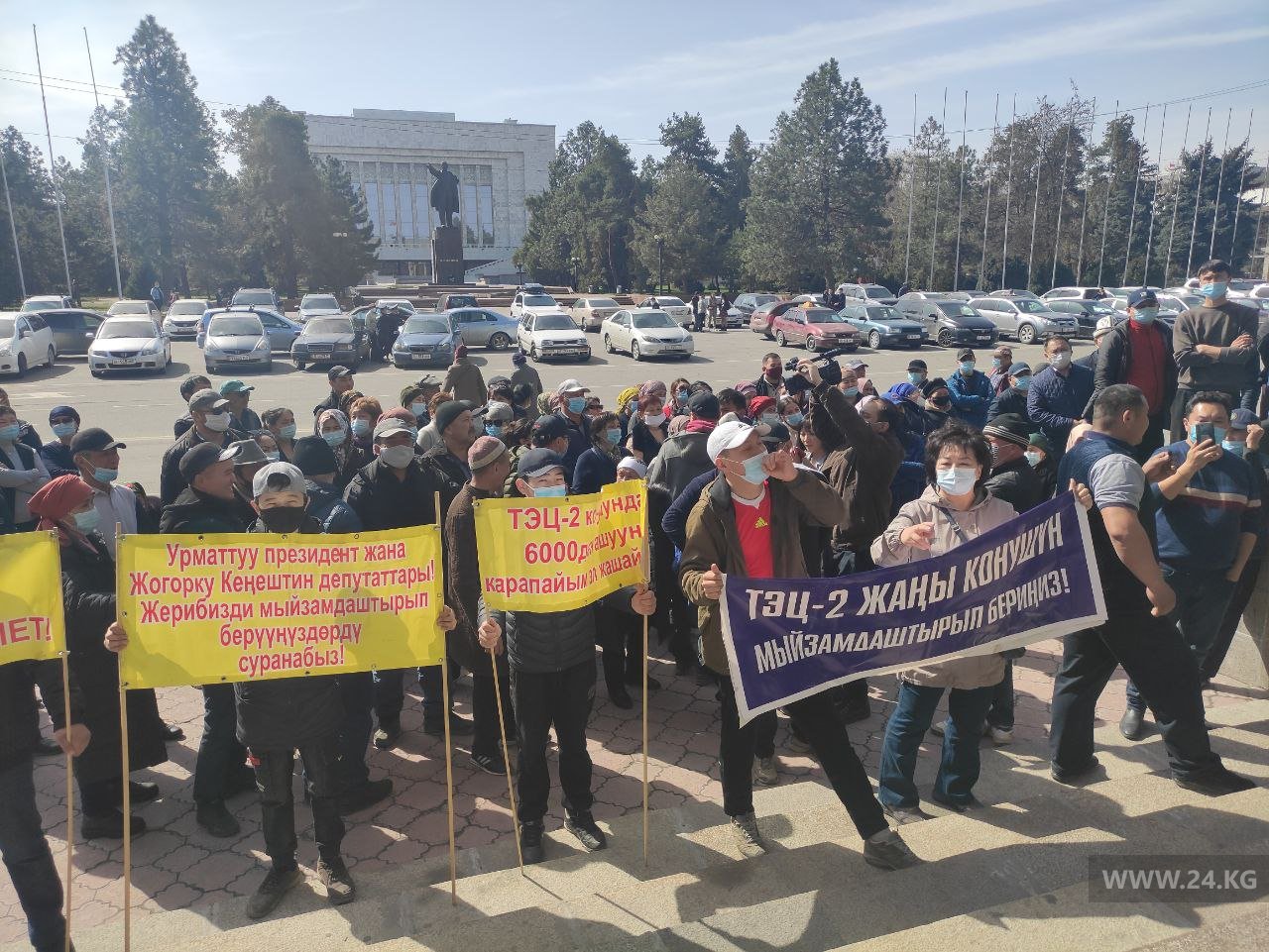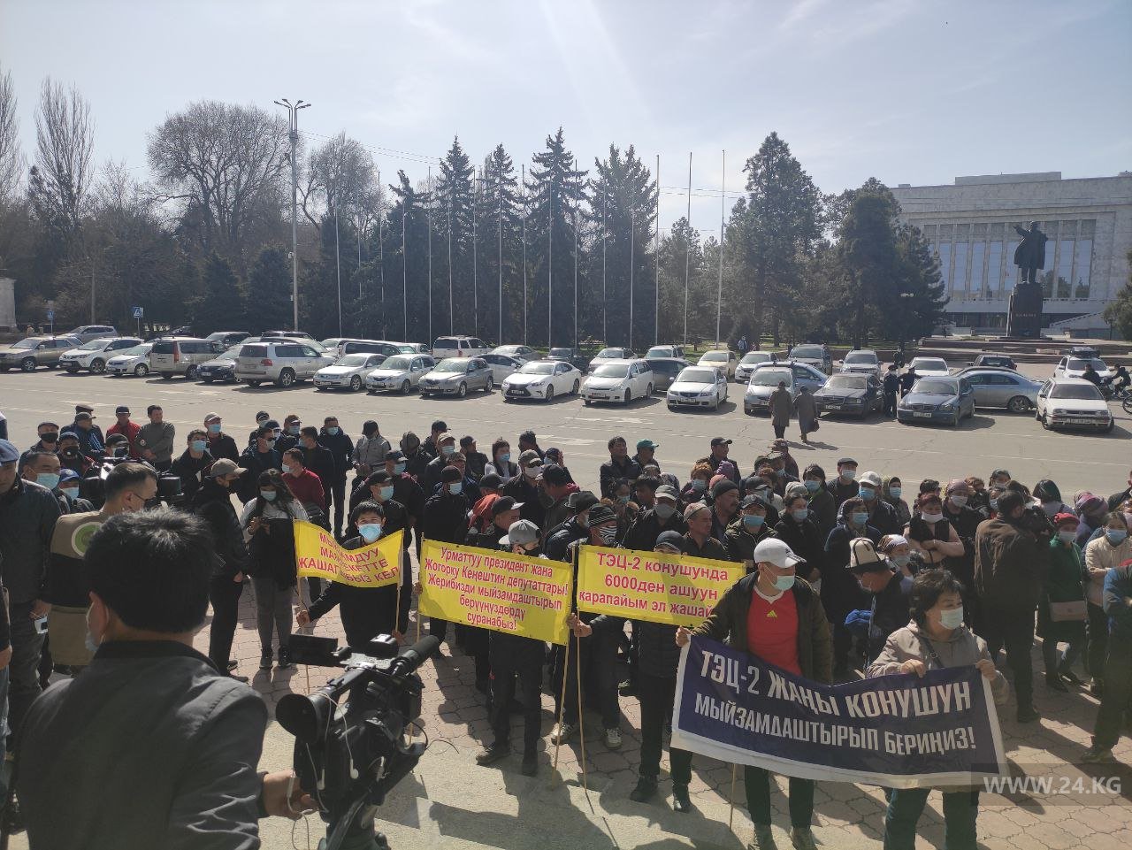 Возле Дома правительства митингуют бишкекчане, живущие рядом с ТЭЦ-2, расположенной на юго-западе столицы.