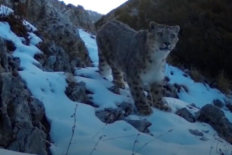 Снежный барс попал в фотоловушку на высоте 3 тысячи метров