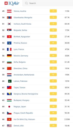 В 19.30 статус города отмечен как «умеренный». Индекс качества воздуха, по данным сайта, составляет 67 (AQI).