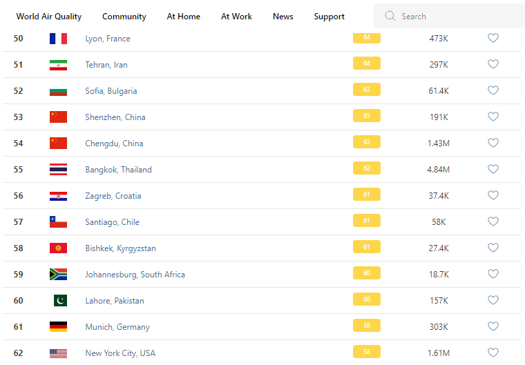 В рейтинге крупнейших городов мира по качеству воздуха World Air Quality Бишкек опустился на 58-е место.