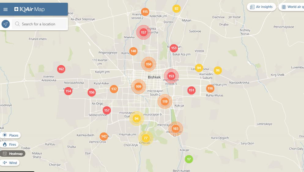 В рейтинге крупнейших городов мира по качеству воздуха World Air Quality Бишкек поднялся на 25-е место.
