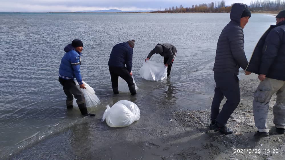 Как сообщается, ежегодно специалисты выпускают в озеро Иссык-Куль миллионы подрощенных мальков, в том числе включенных в Красную книгу, восстанавливая и увеличивая их популяцию, так как естественного воспроизводства рыбы недостаточно.