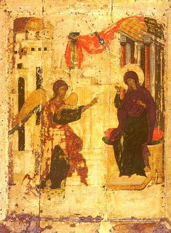 Главной иконой праздника можно считать шедевр Андрея Рублева: ангел сходит к Деве, чтобы возвестить ей Благую весть.