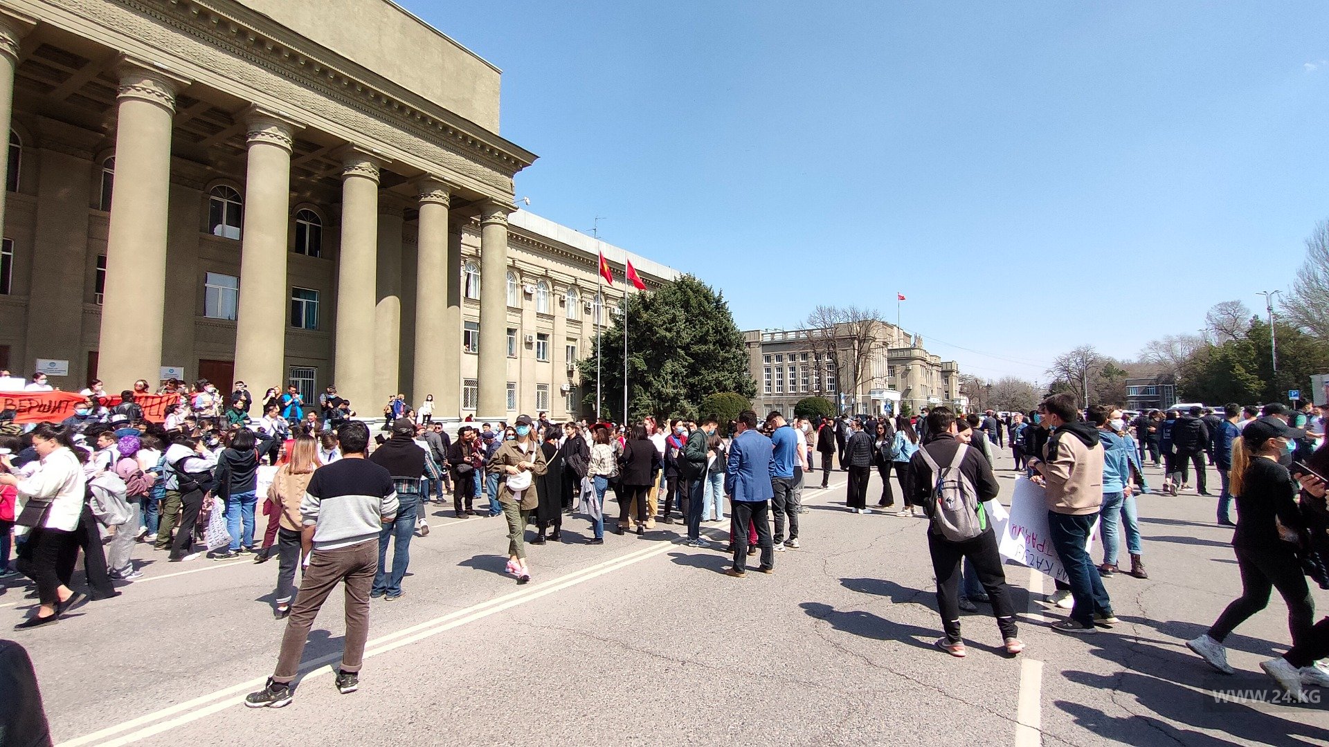 Отметим, что на акцию протеста сегодня вышли примерно 500 человек, в том числе несколько депутатов Жогорку Кенеша. Они требуют отставки руководства МВД во главе с министром Уланом Ниязбековым, а также ГУВД Бишкека и Оша.
