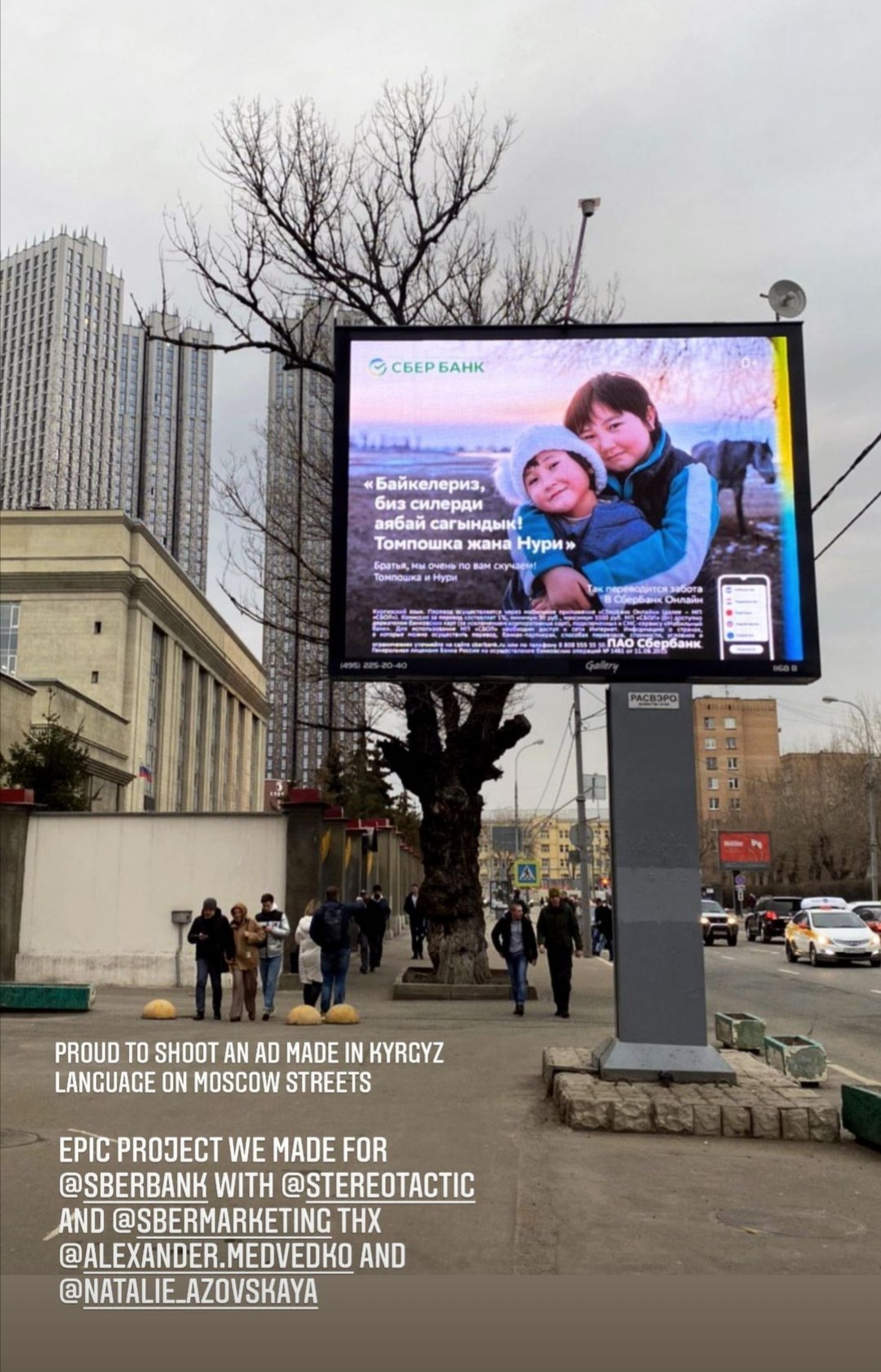 Видео и фото с сестрами из Кыргызстана размещено в соцсетях и digital-площадках, в формате наружной рекламы в транспорте и рабочих общежитиях.