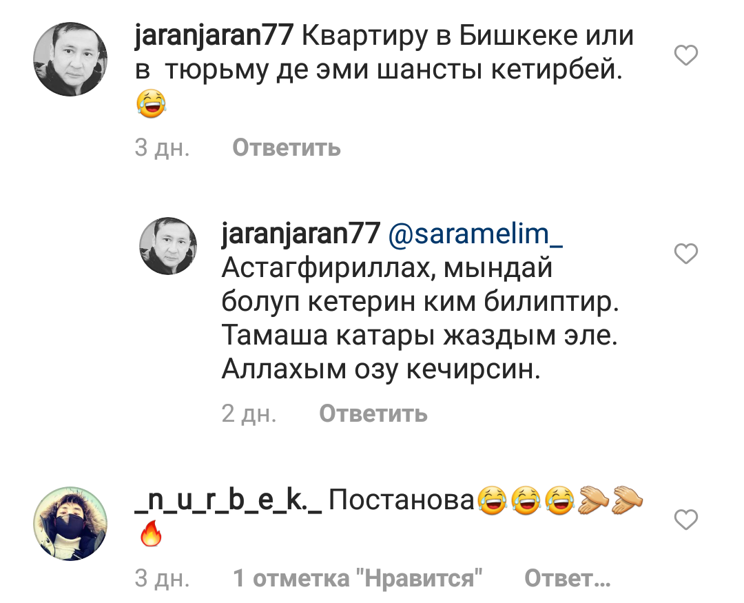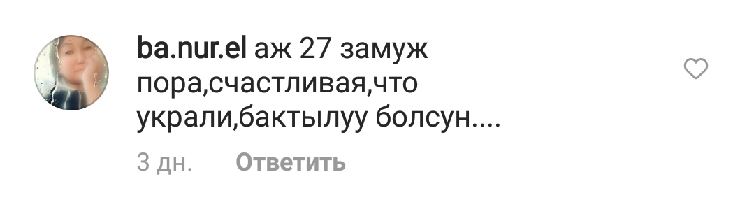 Когда три дня назад появилась информация о том, что в столице средь бела дня похитили девушку, многие шутили о ситуации и желали «счастья молодым и побольше детей». Они написали «Бактылуу бол», что в переводе означает «Будь счастлива».