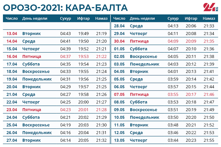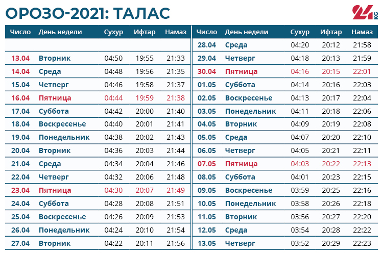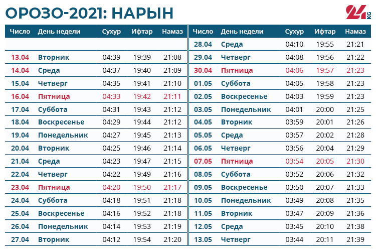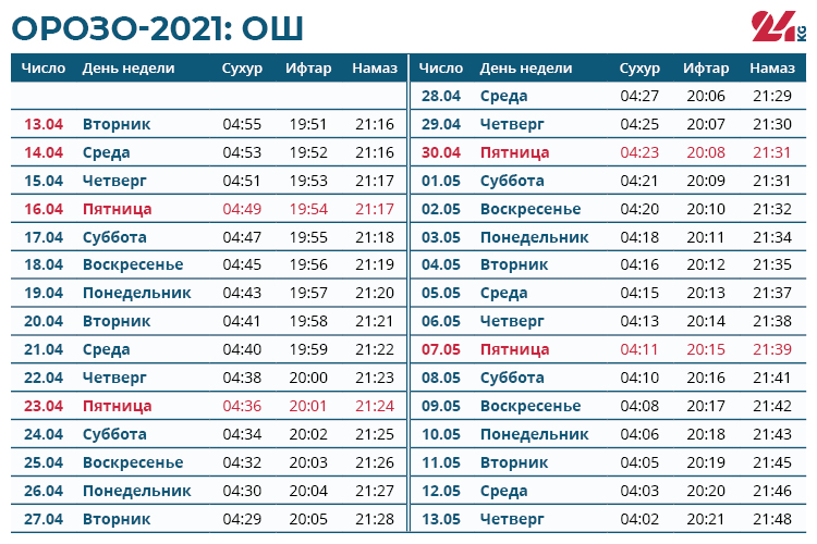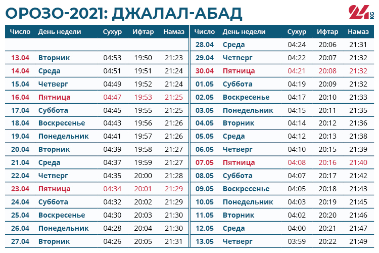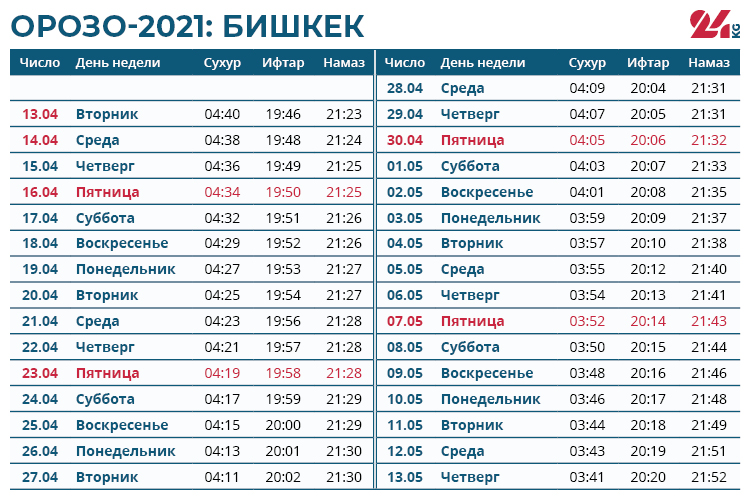 Традиционно во время орозо каждый мусульманин отдает фитр-садака. Размер подаяния определяется Духовным управлением мусульман Кыргызстана. В этом году с каждого человека фитр-садака составляет от 40 до 512 сомов.От поста освобождаются беременные и кормящие женщины, путники и больные. Но им советуют при первой возможности наверстать упущенное и выдержать орозо. Например, путник может сделать это по возвращении домой, а больной — после выздоровления.