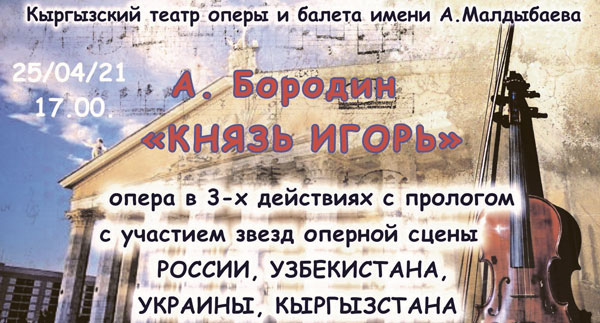 Опера в трех действиях по мотивам древнерусской эпической поэмы «Слово о полку Игореве» с участием звезд оперной сцены Кыргызстана, России, Узбекистана и Украины.