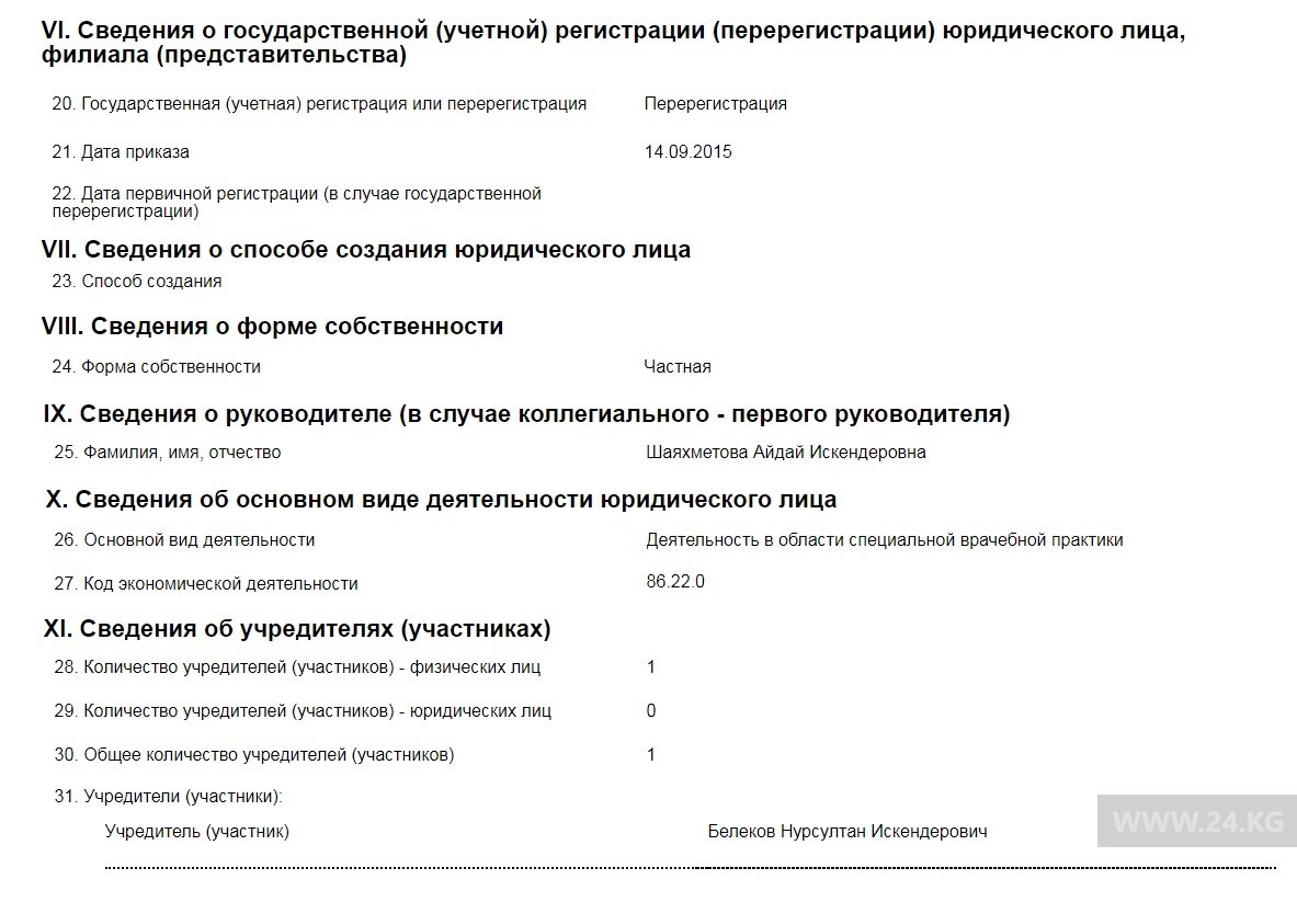 Согласно данным Минюста, станцией скорой помощи «Медикал Сервис» по документам руководит Айдай Шаяхметова — дочь Искендера Шаяхметова, учредителем числится Нурсултан Белеков. Это сын главы ЦЭМ Бишкека.«Затем подстанцию переселили в ЦСМ № 5, а на то место, где сейчас «Медикал Сервис», въехал городской Центр СПИД. В 2008 году в связи с расширением и увеличением коллектива Центра СПИД, мы переехали на Токтогула, 61. Вот это помещение, о котором идет речь сегодня, на конкурсной основе клиника сдала в аренду. Конкурс проводило управление муниципального имущества. Частная скорая помощь существует там с 2005 года и занимает три комнаты. Она появилась там не вчера», — поясняет он.