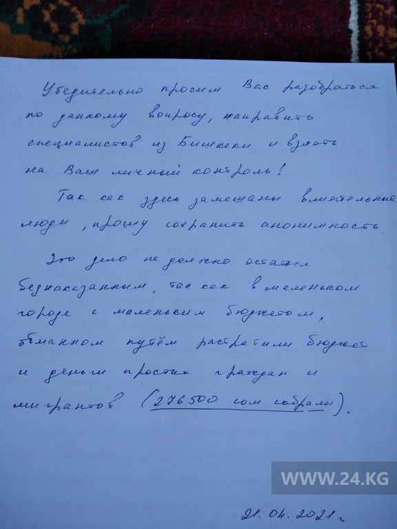 «Это дело не должно остаться безнаказанным, так как в маленьком городе с небольшим бюджетом обманным путем растратили бюджетные средства и деньги мигрантов», — заключили жители Майлуу-Суу.