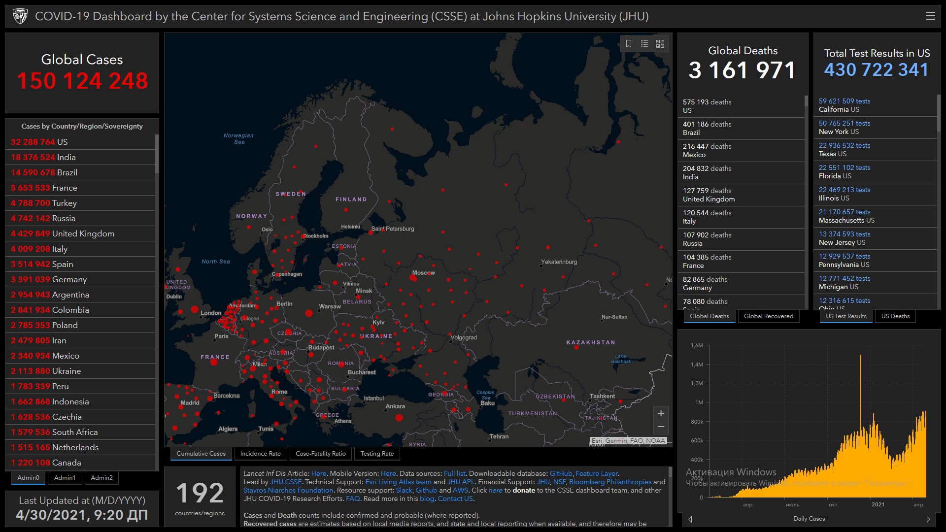 COVID-19 в мире. Заразились более 150,1 миллиона, умерли более 3,1 миллиона