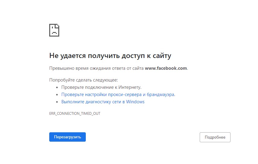 При попытке открыть соцсеть с браузера в компьютере сообщается, что не удается получить доступ к сайту. При этом с мобильных телефонов приложение Facebook открывается.
