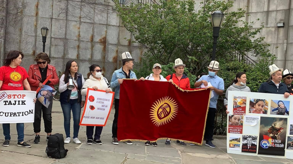 Ситуация на границе. Кыргызстанцы в Нью-Йорке митингуют возле офиса ООН