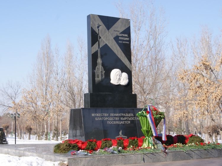 Под монументом заложена капсула с землей с Пискаревского кладбища, где покоятся погибшие блокадники-ленинградцы. Мемориальный комплекс посвящен жертвам блокады Ленинграда и кыргызстанцам, принявшим в свои семьи детей-ленинградцев, эвакуированных в 1942-м.