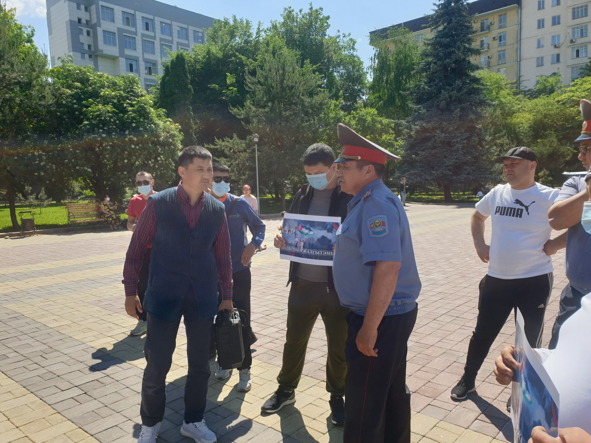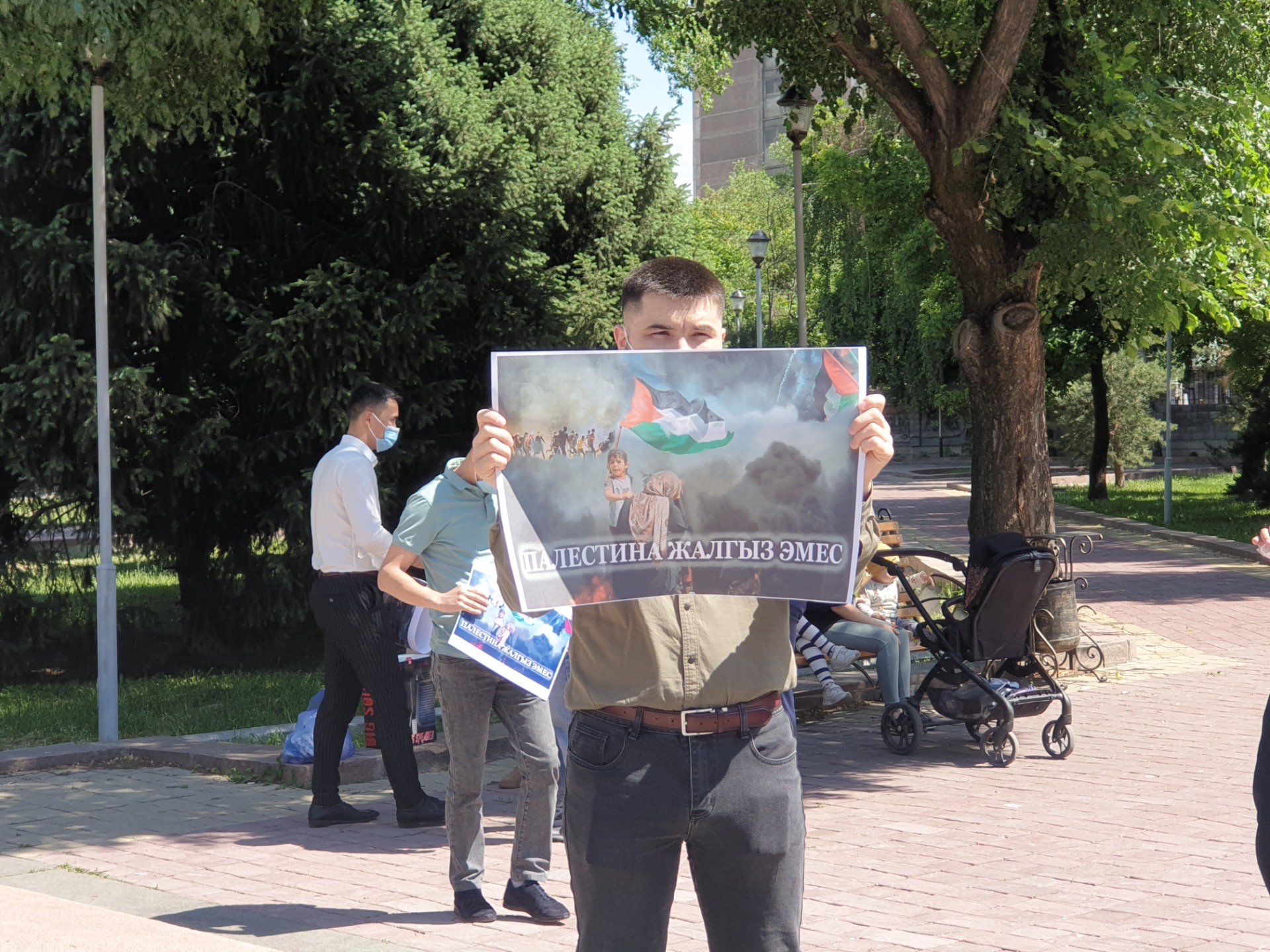 По словам участника акции протеста Руслана Бекназарова, митингующие пришли поддержать Палестину. Они называют Израиль оккупантом.