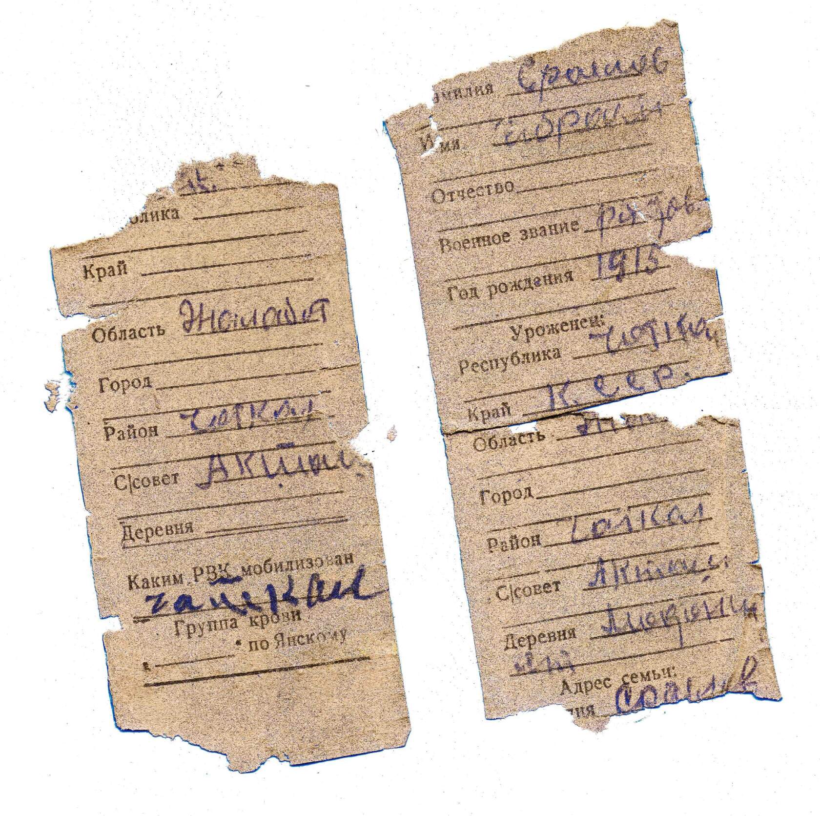 «Он принадлежал Сраилову Ибраилу (или Ибраиму) из села Маданият Чоткальского района Джалал-Абадской области. Сейчас разыскивают родных погибшего бойца, односельчан. Вполне возможно, что родные так и не получили в годы войны похоронки, не знают, где боец похоронен. В документах указано, что он 1915 года рождения, возможно, у него были дети. В документах есть только фамилия отца — Бегалиев», — отметила она.