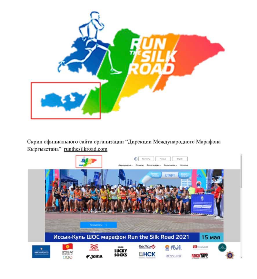 Организаторы марафона Run Silk Road используют логотип с искаженной картой Кыргызстана, где не указаны анклавы. Об этом на своей странице в сети Facebook сообщил депутат Исхак Пирматов.