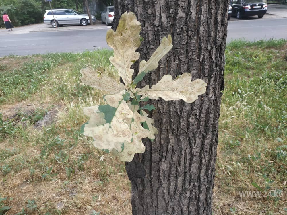 Эпопея с дубами в Бишкеке длится уже больше десяти лет. Весной 2011-го массово увеличилась численность вредителей, с которыми многолетние растения не смогли справиться. Тогда богатую листву этих деревьев насекомые уничтожили буквально за несколько недель.Это заставило руководителей служб и ведомств собраться за одним столом, чтобы выработать комплекс мер по спасению зеленых насаждений города и приграничных районов. Определить вид вредителя помогли ученые Польского института леса и Западно-Венгерского университета, им оказался дубовый минирующий пилильщик. После чего созданная рабочая группа предложила апробировать биопрепарат лепидоцид СК-М и установить феромоно-клеевые ловушки.