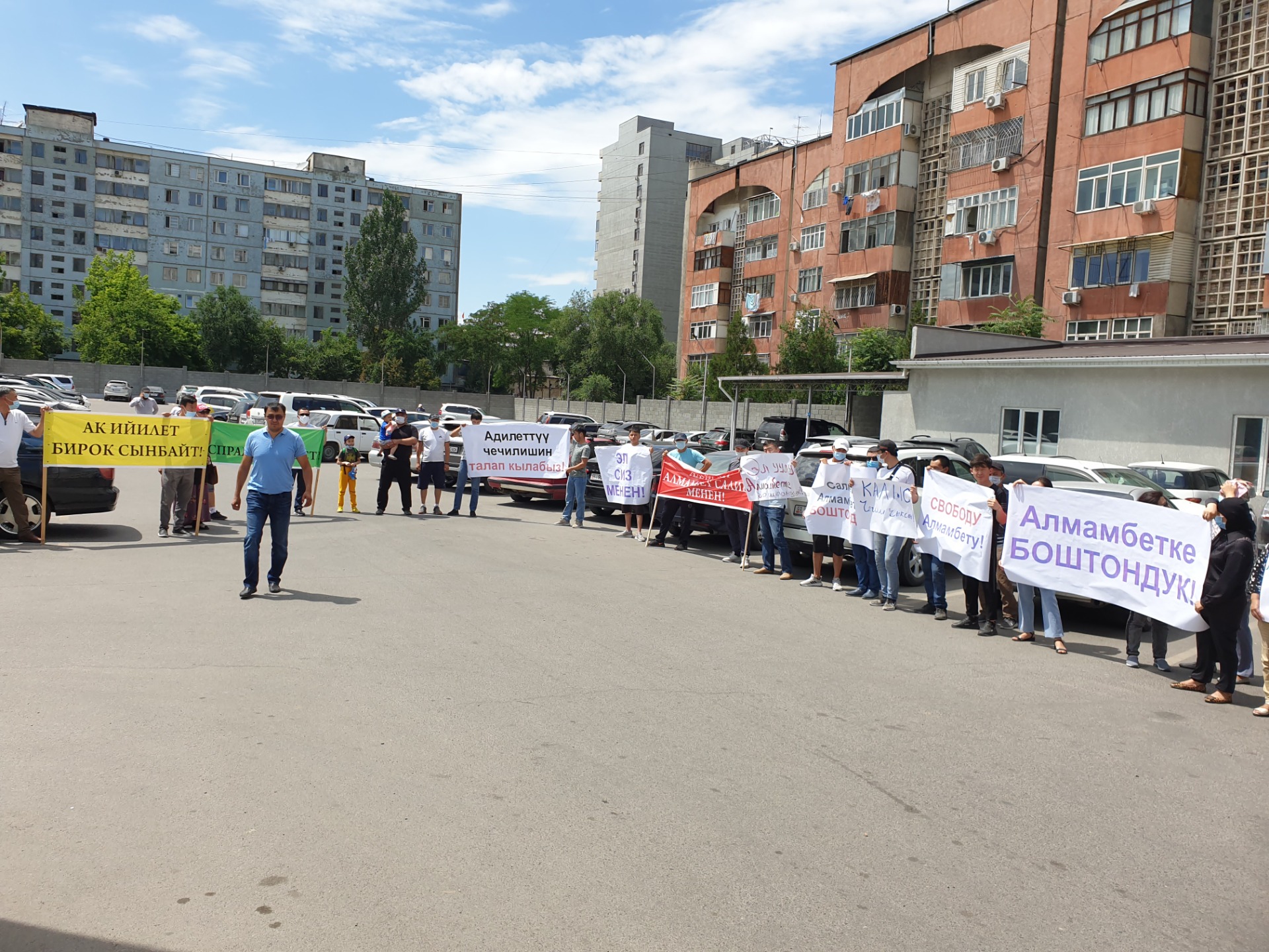 В Бишкеке у здания суда митингуют сторонники Алмамбета Салиева