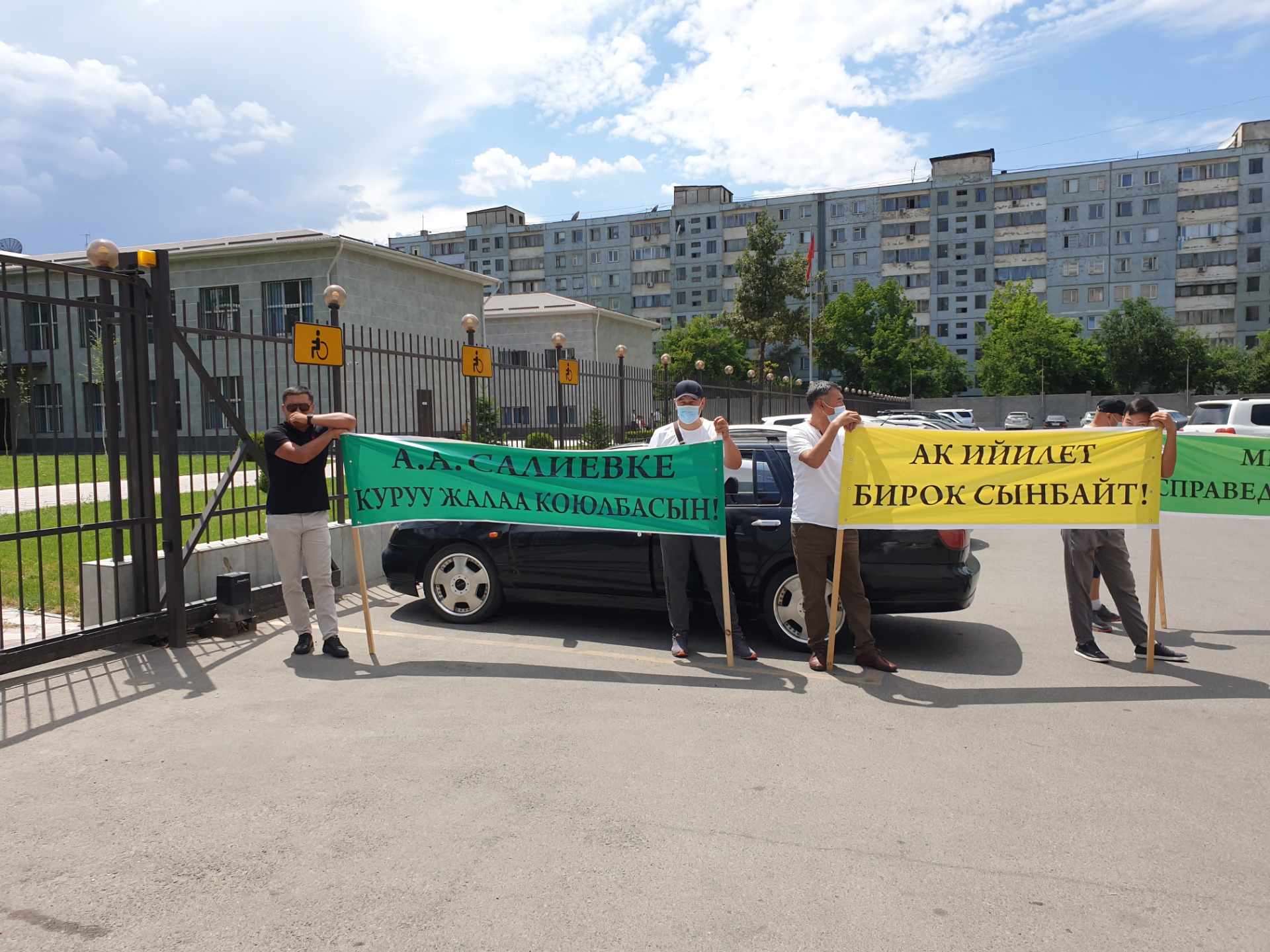 В Бишкеке у здания Первомайского районного суда проходит митинг сторонников бывшего заместителя руководителя аппарата президента Алмамбета Салиева.