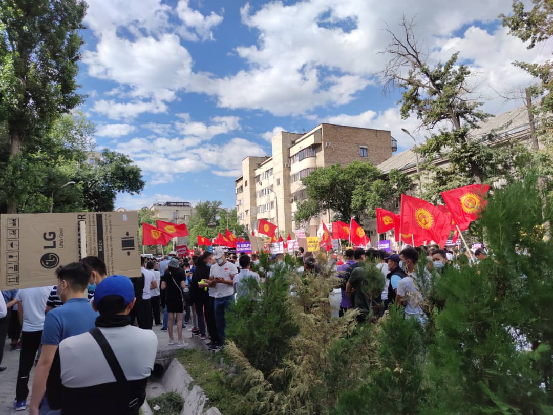 В Бишкеке около здания городского суда собрались сторонники экс-премьер-министра Омурбека Бабанова.