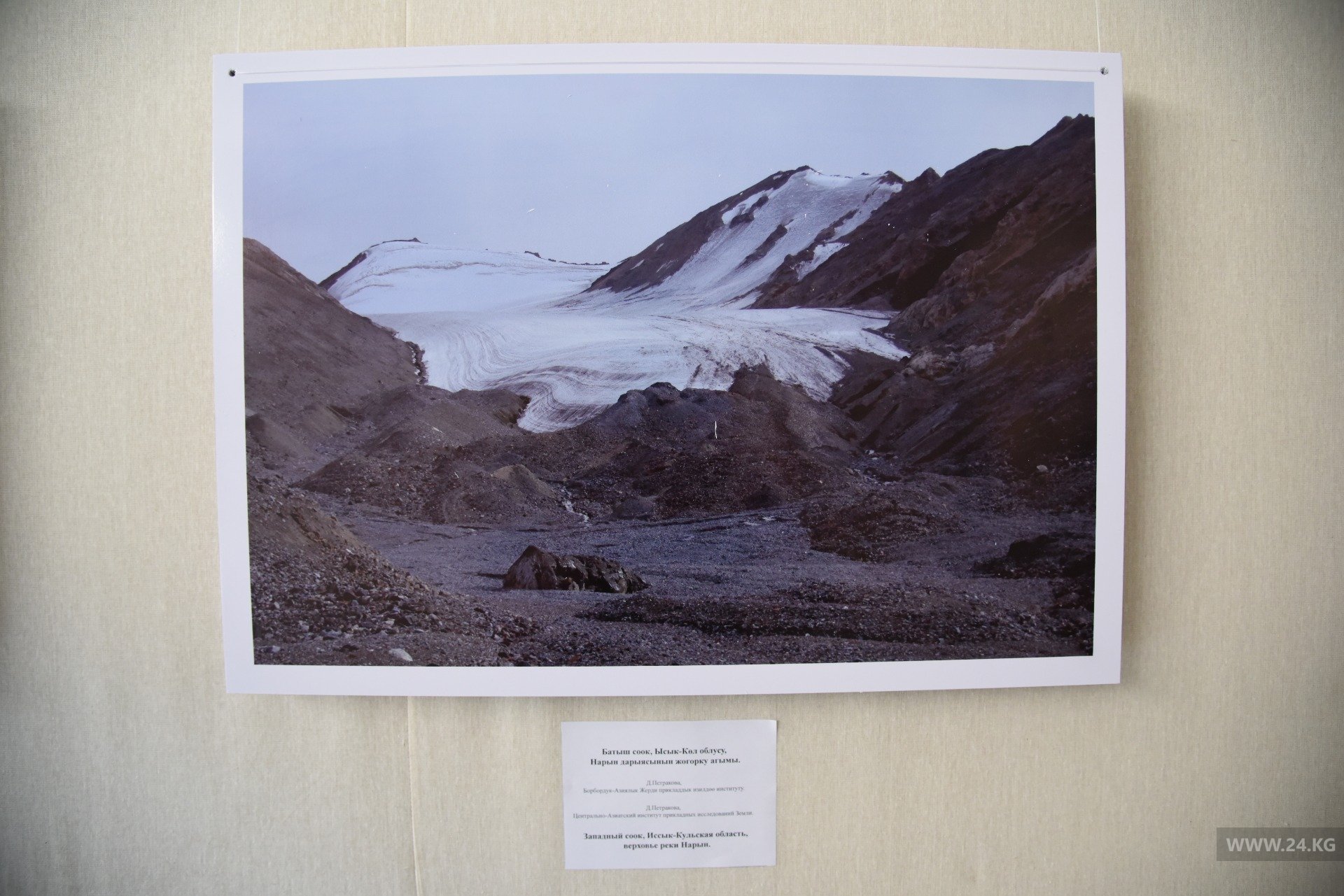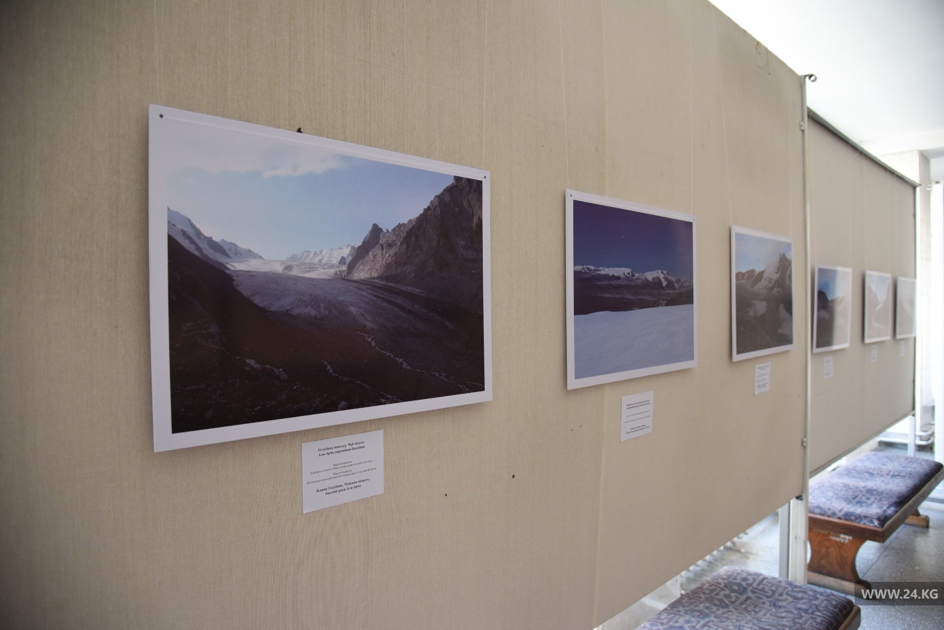 На фотовыставке представлены фотографии ледников Кыргызстана, а также снимки проекта устойчивого горного художества «Агония ледника».