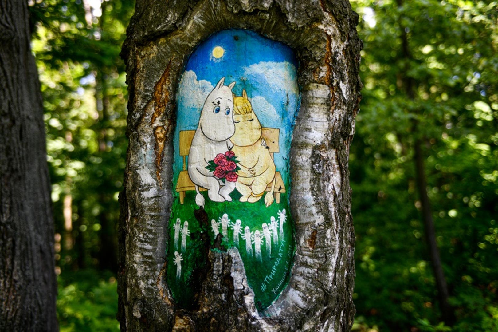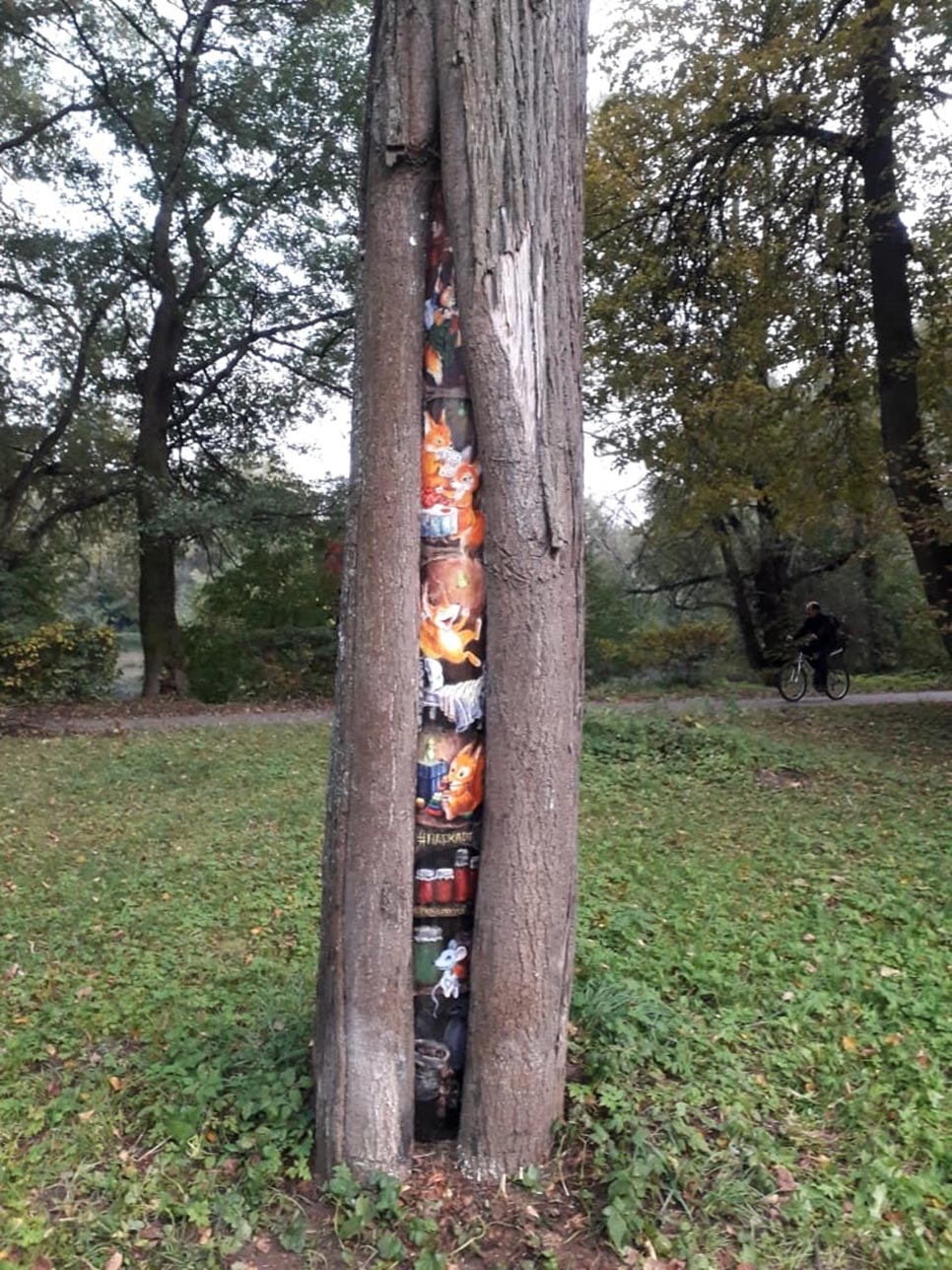 «Поврежденные участки тщательно очищают от остатков коры, гнили, лишайников и мха. Обязательно дезинфицируют, а дупла пломбируют специальной смесью. Следующий этап — нанесение одного-двух слоев водоотталкивающей грунтовки. Для рисования используются безопасные и стойкие акриловые краски. В результате рисунок становится лечебным пластырем, под которым раны дерева консервируются, постепенно затягиваются, а иногда и полностью заживают», — написал он.