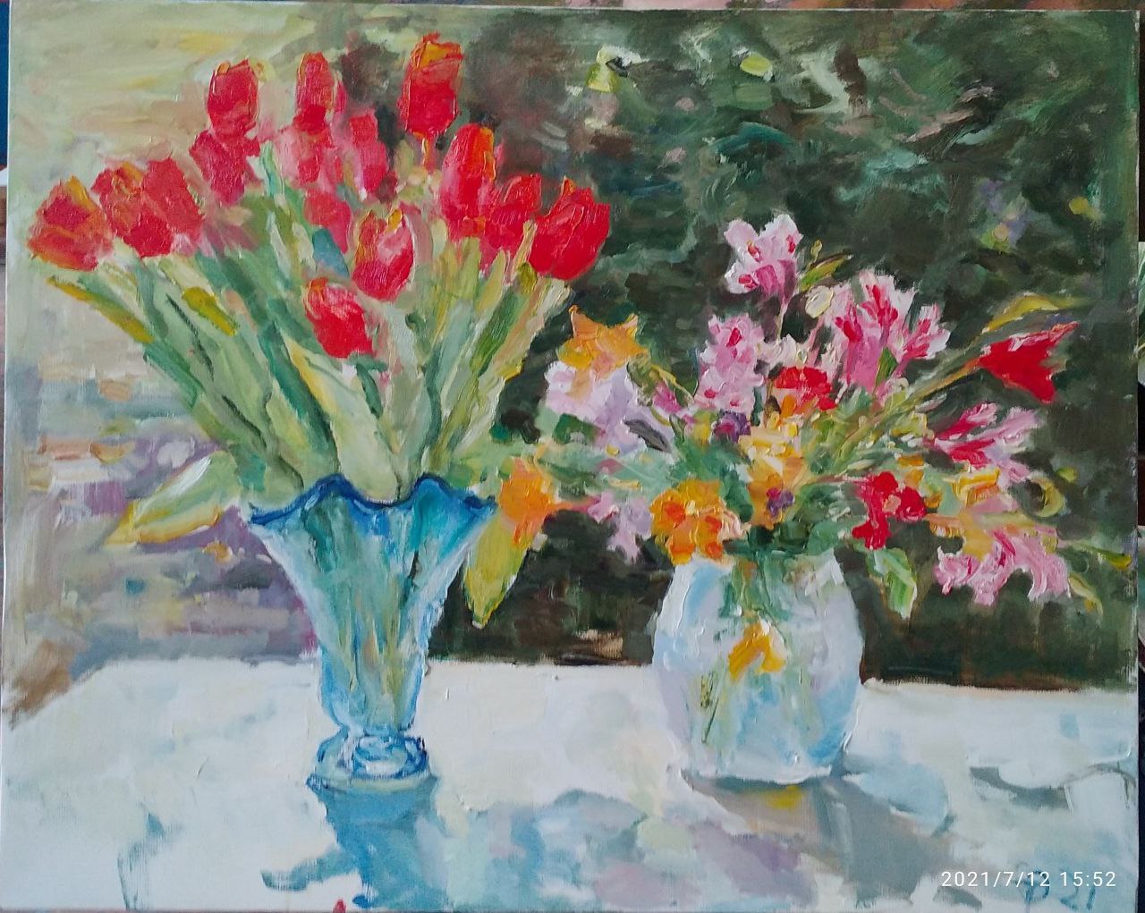 «Цветочные натюрморты Огобаева заряжены внутренней энергией. Он варьирует пластическими средствами, исходя от формы, ее структуры, световой и цветовой закономерности натуры. Его цветочные композиции то наполняются солнечным светом, вибрирующим воздухом и легкостью палитры цветов, то излучают их жизненную силу, сочность и глубину. Здесь художником движет желание запечатлеть красоту и донести ее до зрителя», — отметили в галерее.