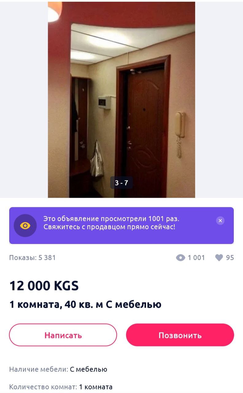 Журналист 24-kg.com наткнулся на подозрительное объявление о сдаче недорогого жилья в центре Бишкека и решил проверить, насколько реально арендовать однокомнатную квартиру меньше чем за 15 тысяч сомов в месяц в районе филармонии.