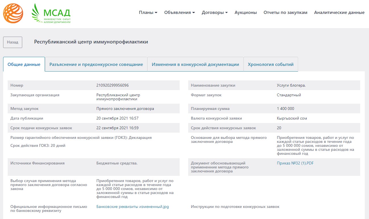 Республиканский центр иммунопрофилактики наймет блогера за 1,4 миллиона сомов. Об этом сообщил портал государственных закупок.