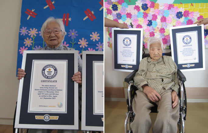 Сегодня они содержатся в разных домах престарелых. Кодаме и Сумияме вручили сертификаты, которые подтверждают, что они старейшие из ныне живущих однояйцевых близнецов-женщин и самые взрослые однояйцевые близнецы в истории.