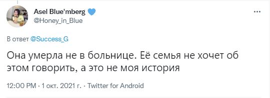 Позже она уточнила, что женщина якобы умерла дома, а не в медучреждении.