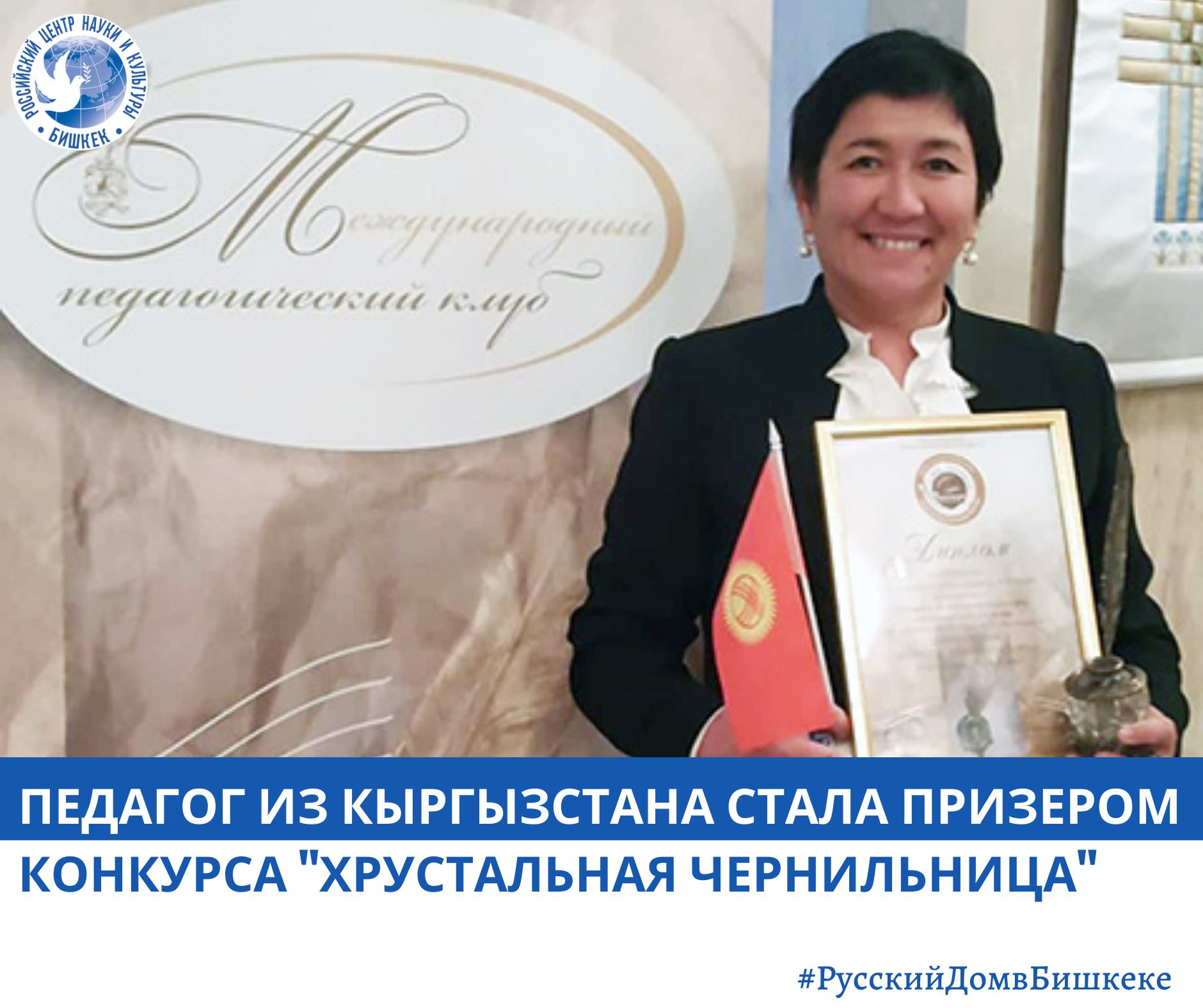 Учитель из Кыргызстана стала призером международного конкурса «Хрустальная чернильница». Об этом сообщили в Русском доме в Бишкеке.