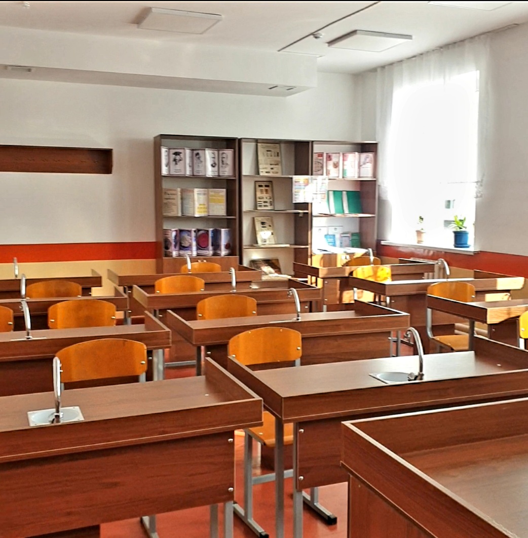 В двухэтажном учебном корпусе, помимо учебных и лабораторных классов, учительской, расположены столовая, актовый и спортивный залы с раздевалками и медкабинет. Школа оснащена всем необходимым оборудованием и мебелью.