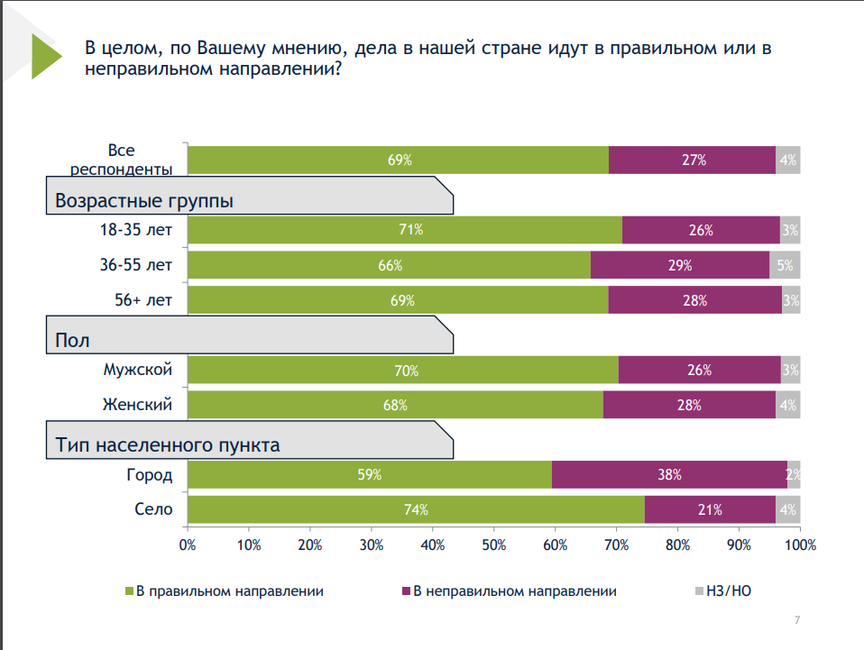 69 процентов респондентов, принявших участие в исследовании, считают, что дела в стране идут хорошо. Таковы данные социологического опроса, который провел Международный республиканский институт (IRI).