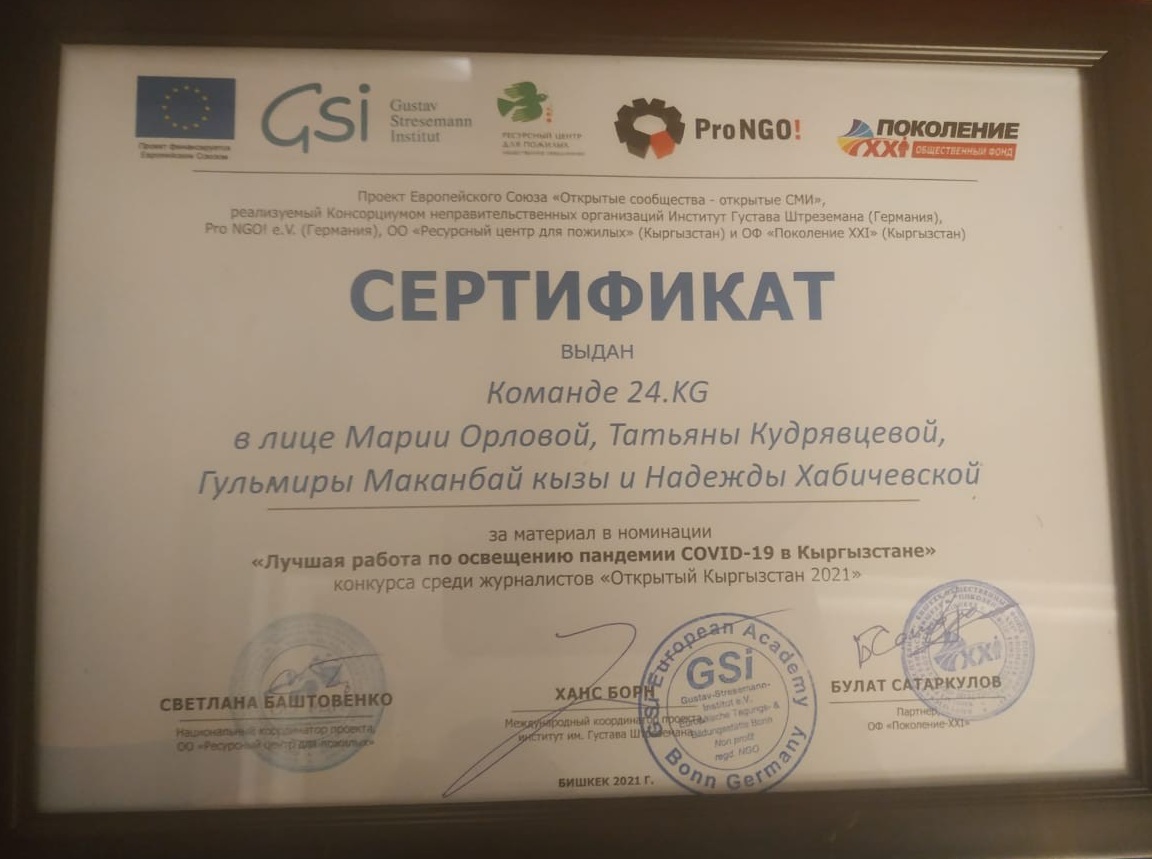Лонгрид 24-kg.com «Год с COVID-19. Как коронавирус изменил Кыргызстан и научил всех мыть руки» стал победителем конкурса проекта ЕС «Открытые сообщества — открытые СМИ».