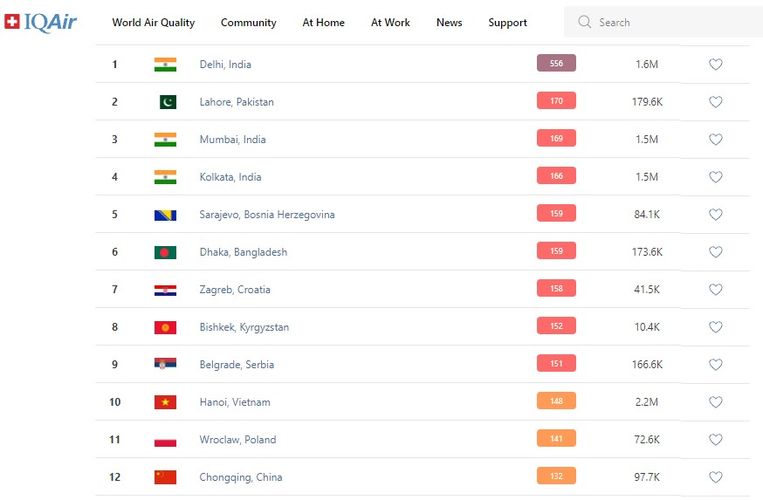 В 18.20 статус города отмечен как «нездоровый». Индекс качества воздуха, по данным сайта, составляет 152 (AQI).