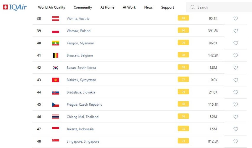 В рейтинге крупнейших городов мира по качеству воздуха World Air Quality Бишкек находится на 43-м месте.