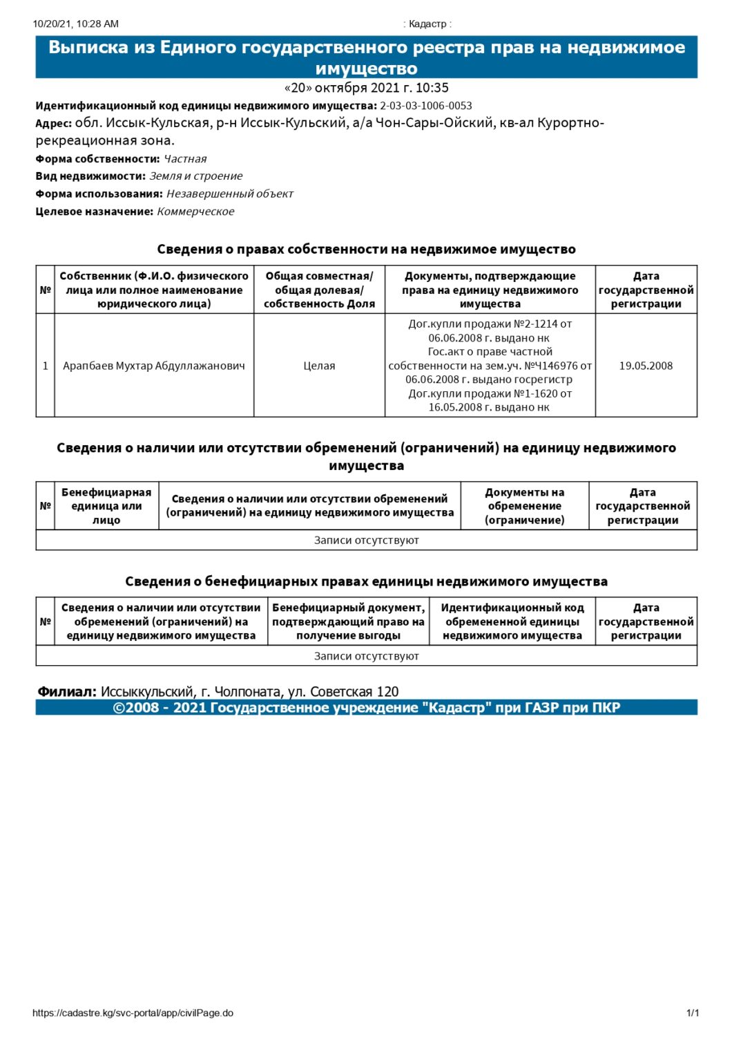 Асылбек Айдаралиев — основатель Международного университета Кыргызстана на правах сервитута (право пользования чужой собственностью) владеет коттеджем в Чолпон-Ате с 2021 года.
